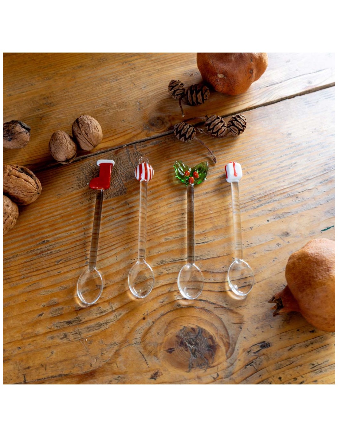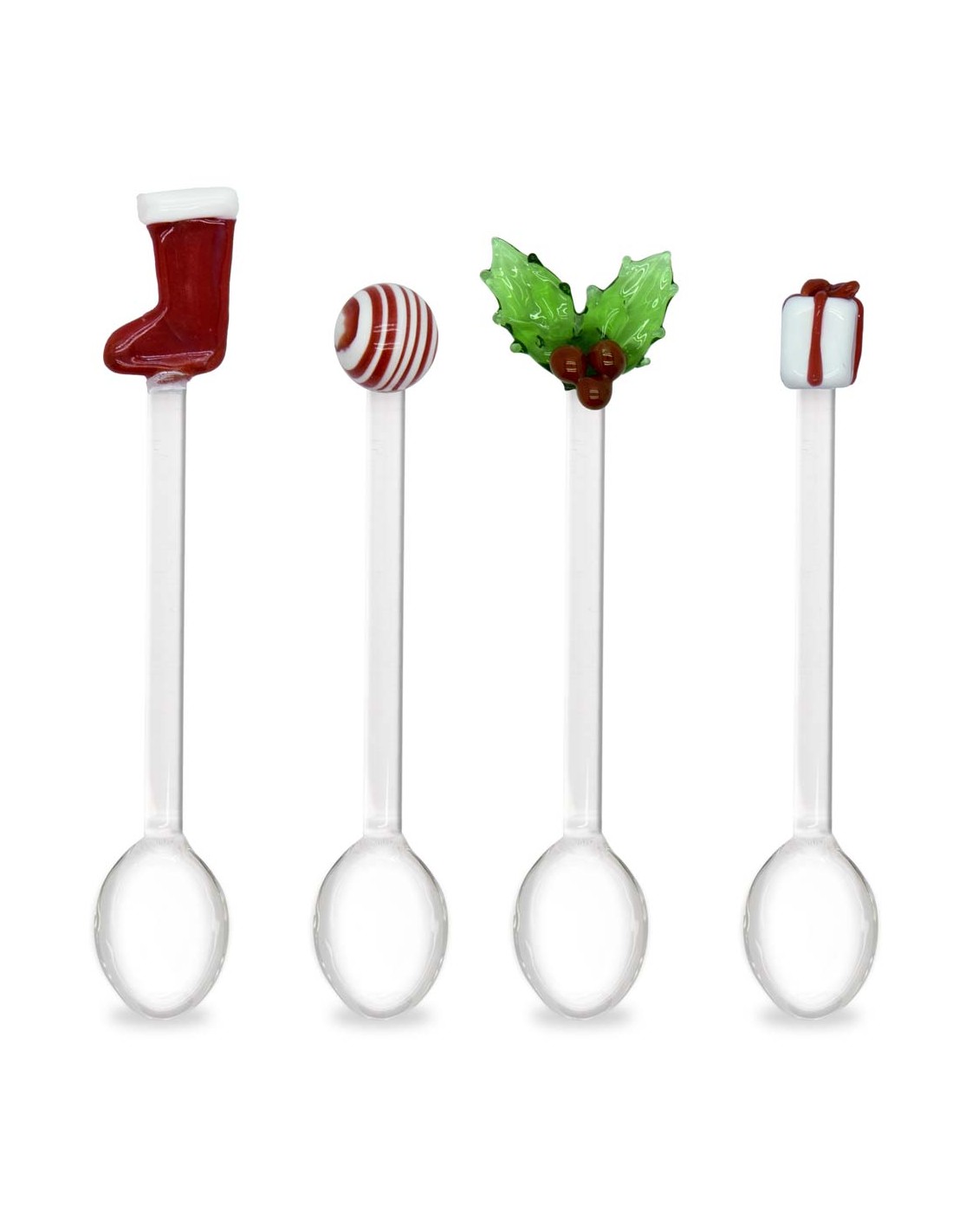 Juego de 4 cucharillas de café con decoración navideña elaboradas artesanalmente en vidrio soplado de colores. Un regalo original que enloquecerá a amigos y familiares, ¡combínalo con el resto de artículos de la línea Monterey para un juego completo!