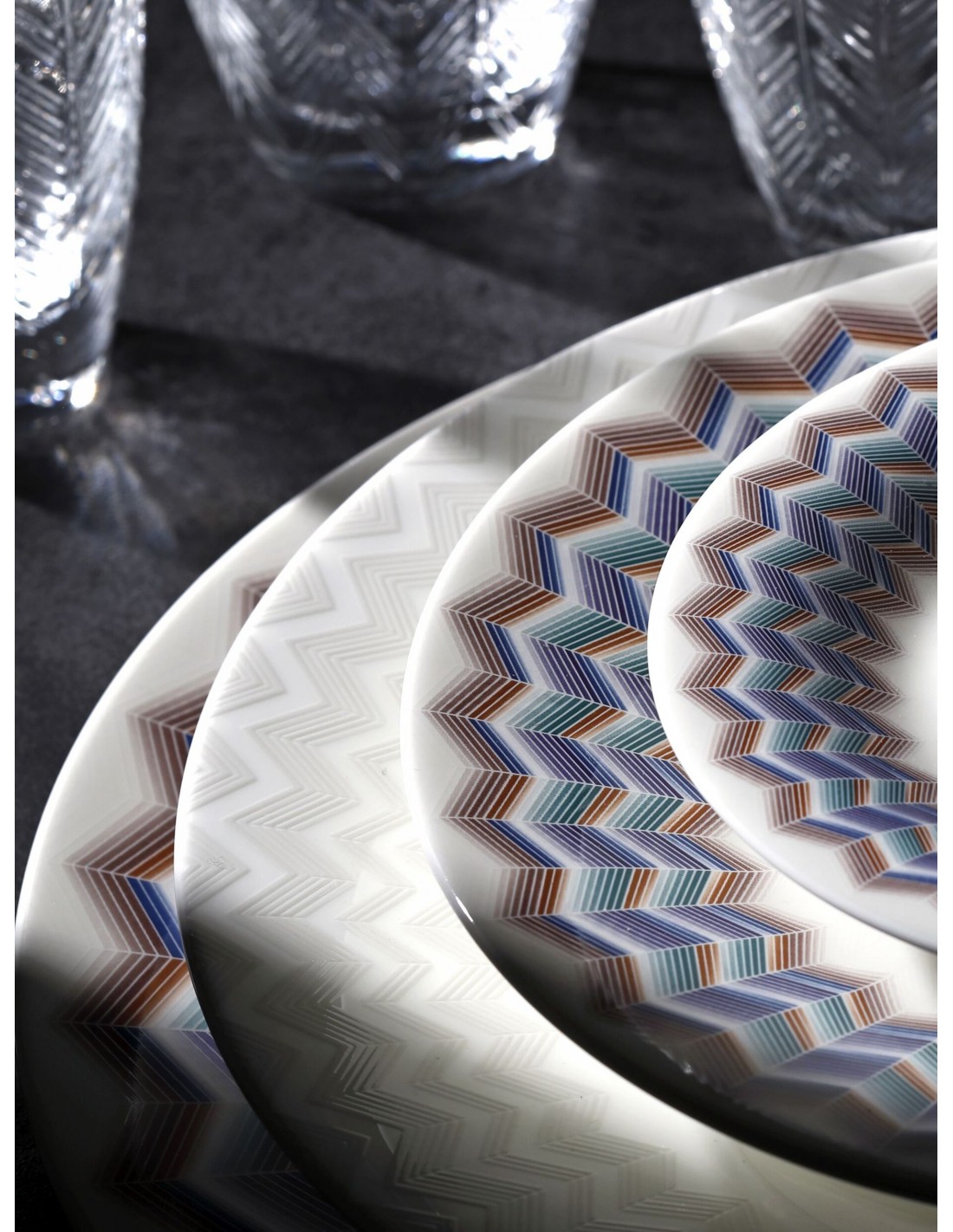 Plato de postre Zig Zag Jarris (juego de 6) de Missoni Tableware con diseño tejido en zigzag característico en azul y blanco, marco redondo y juego de seis. El artículo que reciba puede diferir levemente del artículo fotografiado. Esto se debe a la naturaleza artesanal con la que se fabrican todos los productos Missoni.