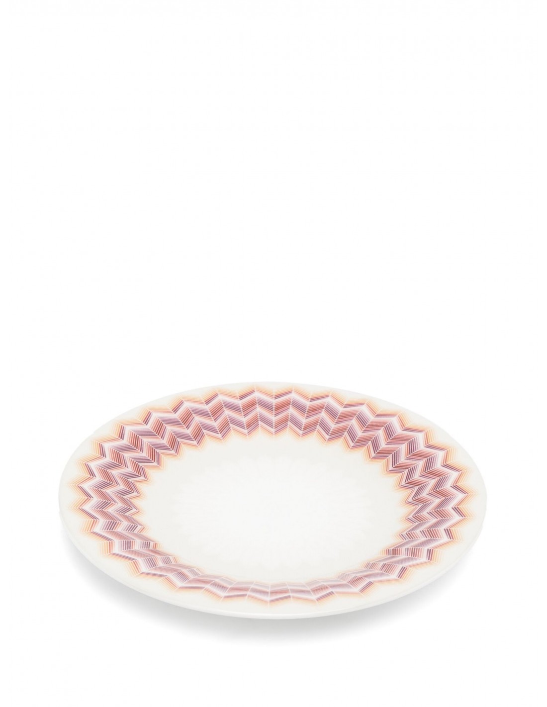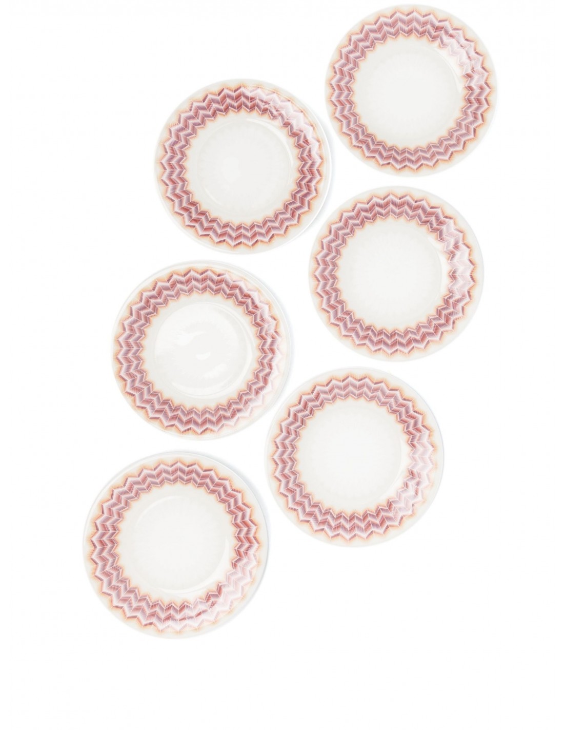 Plato para pan Zig Zag Jarris (juego de 6) de Missoni Tableware con porcelana blanca/multicolor, estampado en zigzag, logotipo impreso en la parte posterior, marco en forma de corazón y juego de seis. El artículo que reciba puede diferir levemente del artículo fotografiado. Esto se debe a la naturaleza artesanal con la que se fabrican todos los productos Missoni.