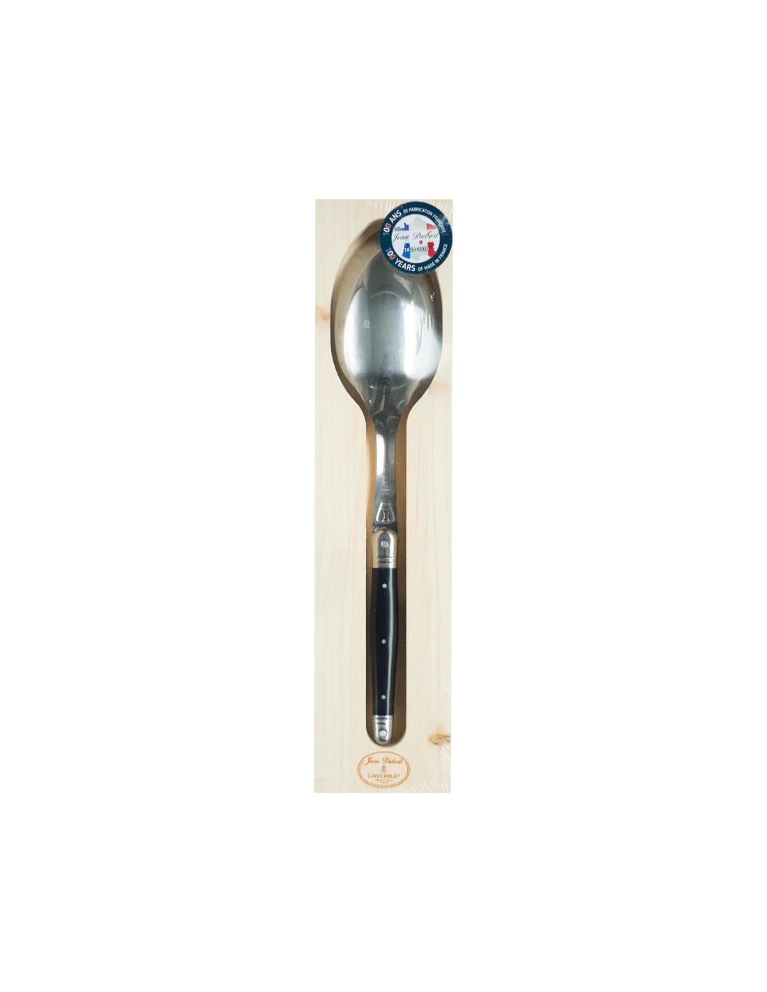 Con esta gran cuchara de Laguiole Jean Dubost se puede servir cualquier delicia en casa. Hecha en acero inoxidable con el mango en color negro
