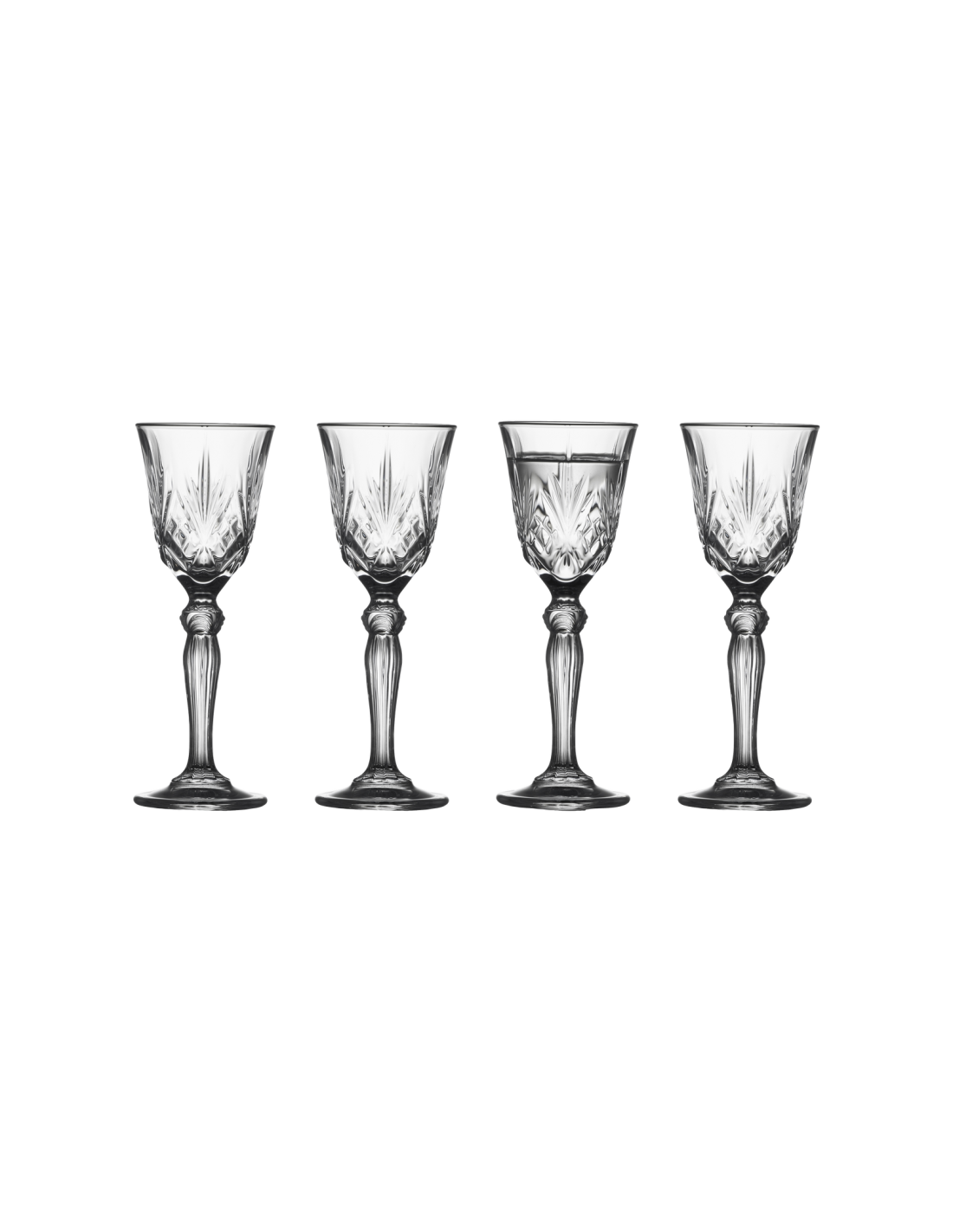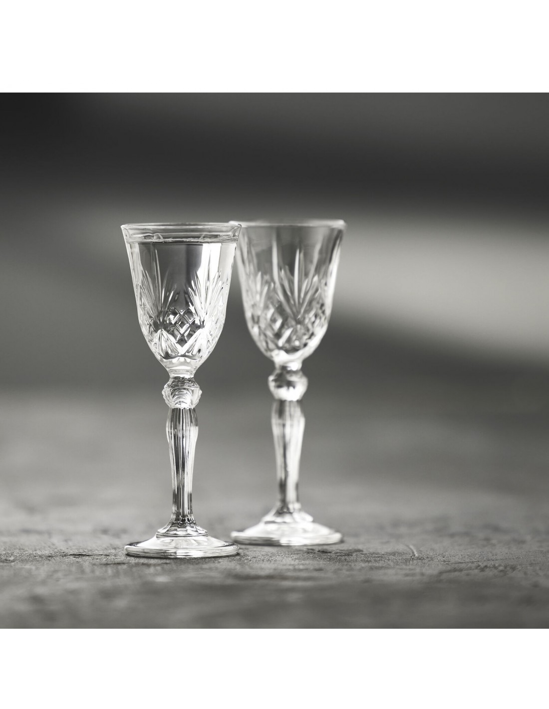 Deleite a sus invitados con un buen schnaps servido en elegantes vasos de schnap que resaltan los matices del contenido cuando las sombras y la luz ambiental se reflejan en el hermoso patrón del vaso. El vaso de aguardio también es adecuado para servir un oporto con cuerpo, un delicioso licor o un vino dulce y licoroso. Apto para lavavajillas. 5 cl, 4 piezas.
