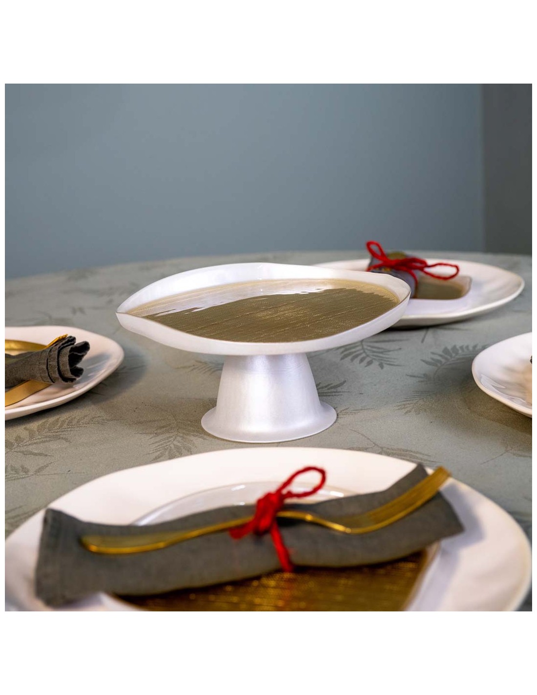 Soporte de vidrio coloreado. Gracias a sus formas irregulares y colores vivos, permite servir postres y aperitivos de forma atractiva, haciendo tu mesa elegante y original durante las fiestas.