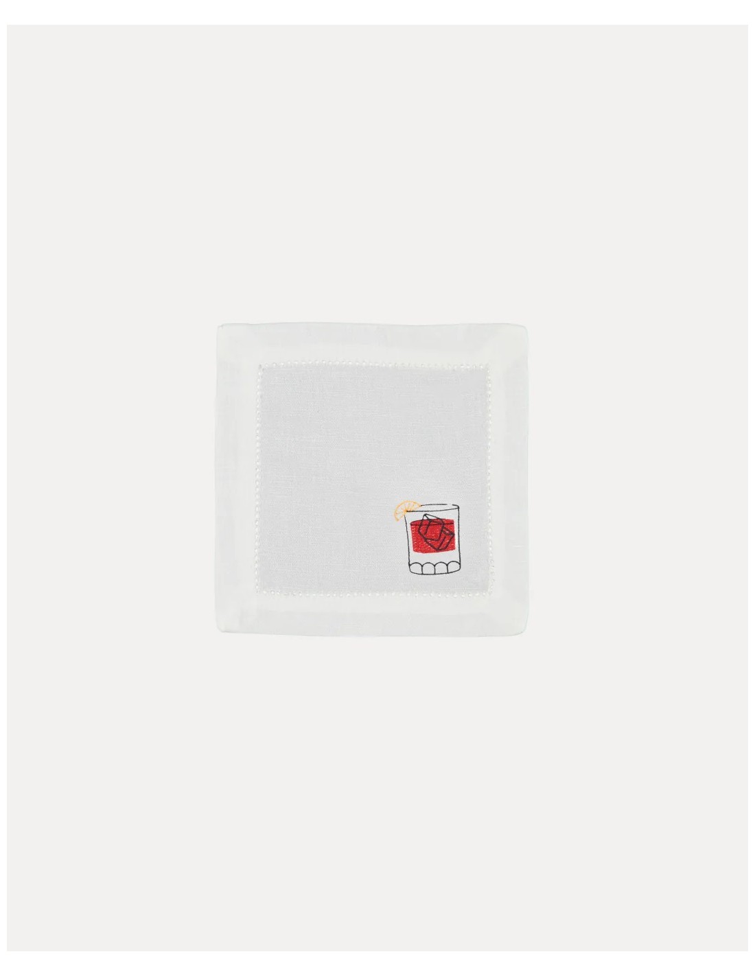 Complete su mesa con nuestra servilleta de cóctel Negroni, hecha de lino y algodón. Con un delicado bordado de la icónica copa de Negroni, esta servilleta aporta un toque moderno y sofisticado, perfecto para ocasiones relajadas o fiestas elegantes. La combinación de estilo y sencillez lo convierte en la opción ideal para complementar sus bebidas.