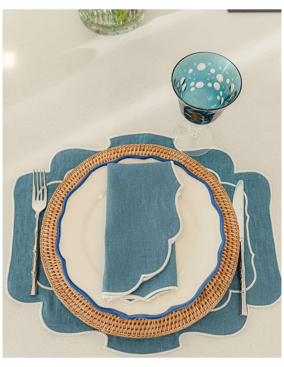 La servilleta Belmonte en azul y blanco complementa tu mesa con elegancia. Fabricado con materiales de alta calidad, armoniza perfectamente con el mantel individual Belmonte. Añade un toque de clase a cualquier comida.