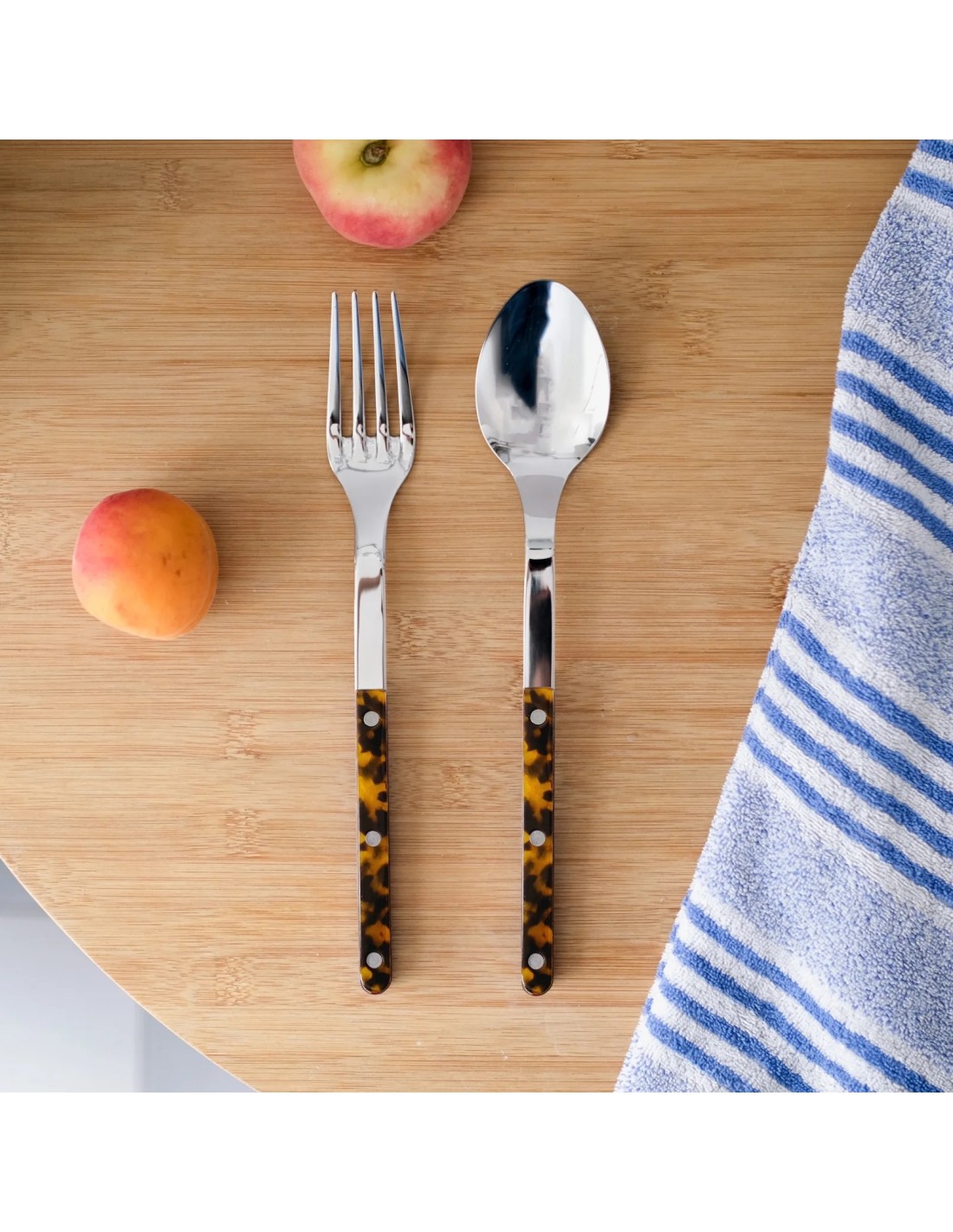 Al diseñar esta cubertería, quisimos capturar fielmente la atmósfera con un toque moderno: el estilo es sencillo, los remaches son visibles y los colores y materiales resaltan con elegancia. Desde el rojo hasta el azul, sin olvidar los magníficos materiales con efectos de cuerno o carey. Disponibles en acabados brillantes o vintage, estamos seguros de que disfrutará de esta colección, diseñada para ser a la vez tradicional y contemporánea.