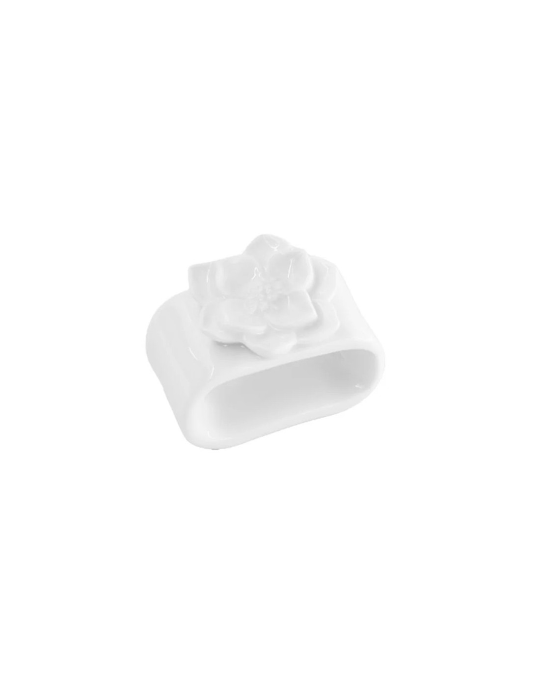 Servilletero de Porcelana Blanca con Rosa "Sobre la Mesa" D3x5xH4 cm.