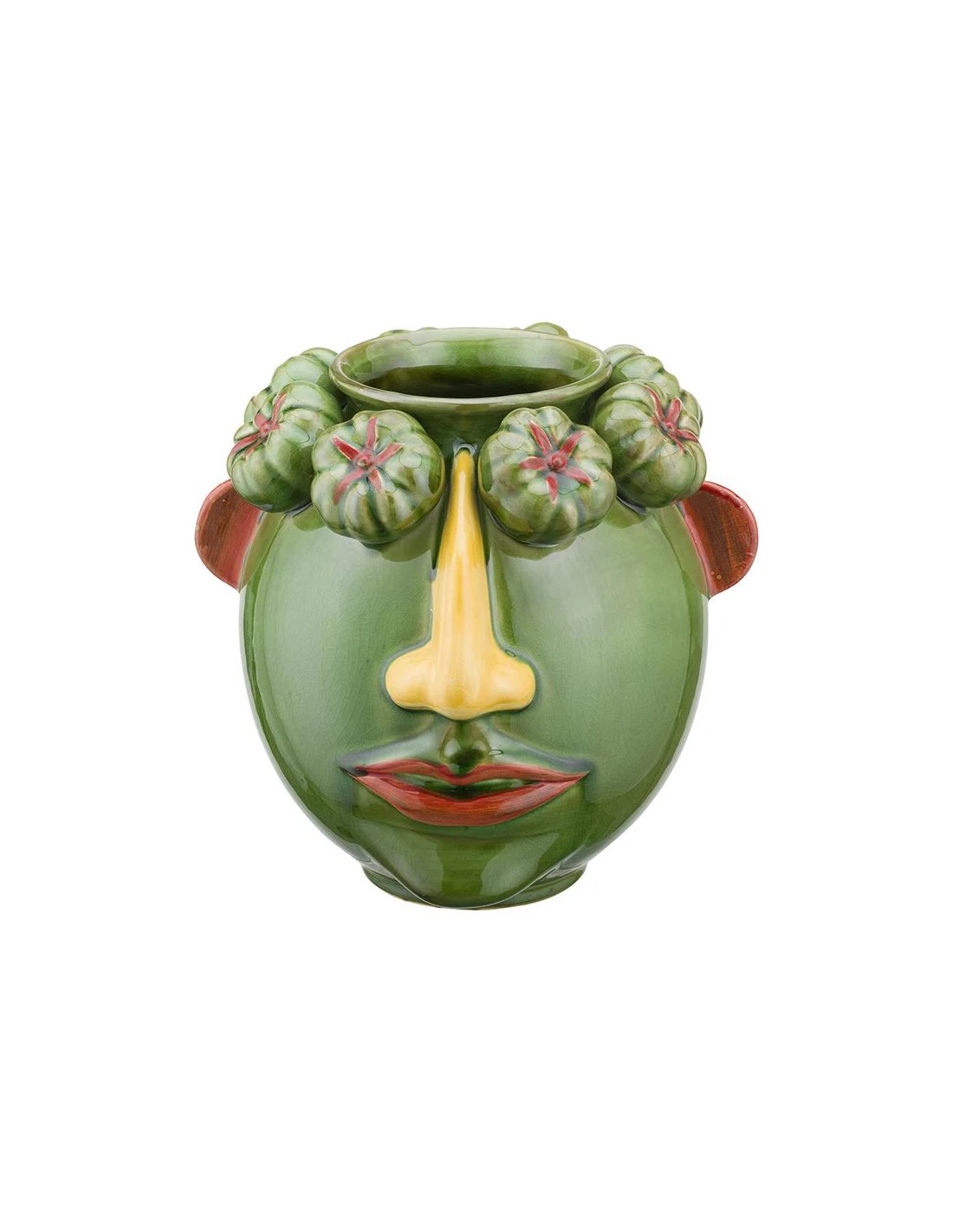 Aporta un toque de elegancia y creatividad a tu hogar con el jarrón decorativo de cerámica verde, una obra maestra realizada con maestría artesanal por Rituali Domestici. Este jarrón, inspirado en el genio creativo de Arcimboldo, combina un diseño artístico con una funcionalidad práctica, perfecto para realzar la decoración de cualquier ambiente del hogar.