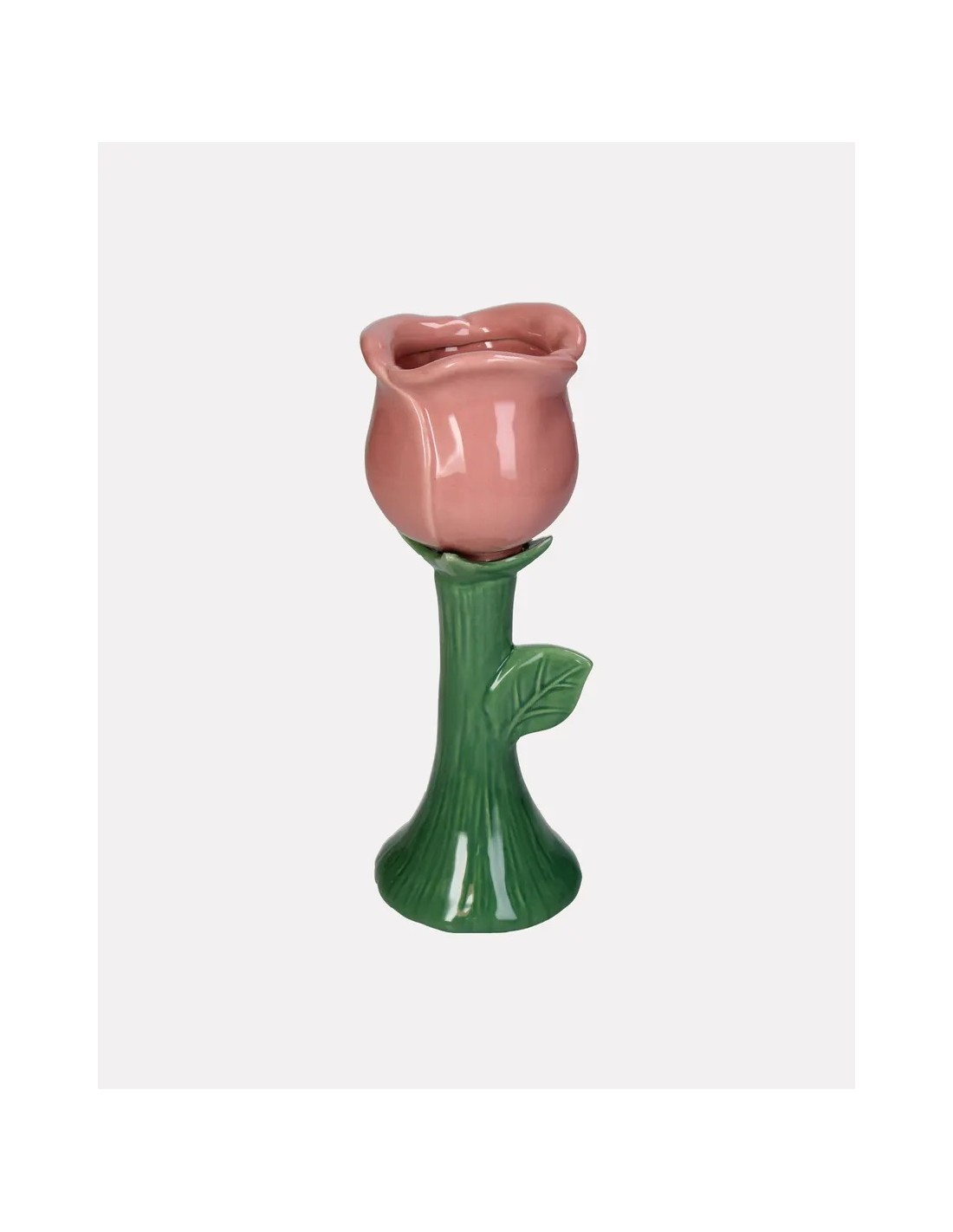 Elegante y atemporal, este jarrón rosa aporta una elegancia natural a cualquier espacio. Elaborado en fina loza, sus suaves pétalos rosados y su tallo verde frondoso crean una silueta bellamente escultural. Perfecto para exhibir una sola flor o añadir un toque romántico a estanterías y mesas. Una forma encantadora de llevar la belleza floral a tu hogar durante todo el año.