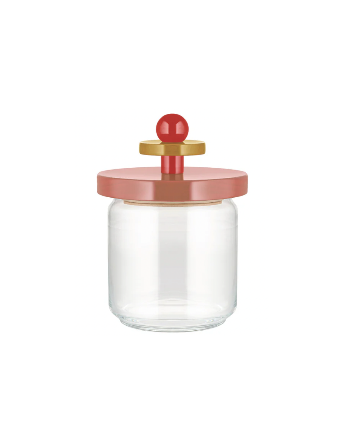 Ettore Sottsass reinterpreta un clásico de la cocina con su inconfundible lenguaje de volúmenes coloreados superpuestos. El bote ideal para conservar alimentos secos como arroz, pasta, galletas, o bien en polvo como azúcar, sal y café. El cuerpo de vidrio y el cierre hermético conservan el sabor y el aroma de los productos.