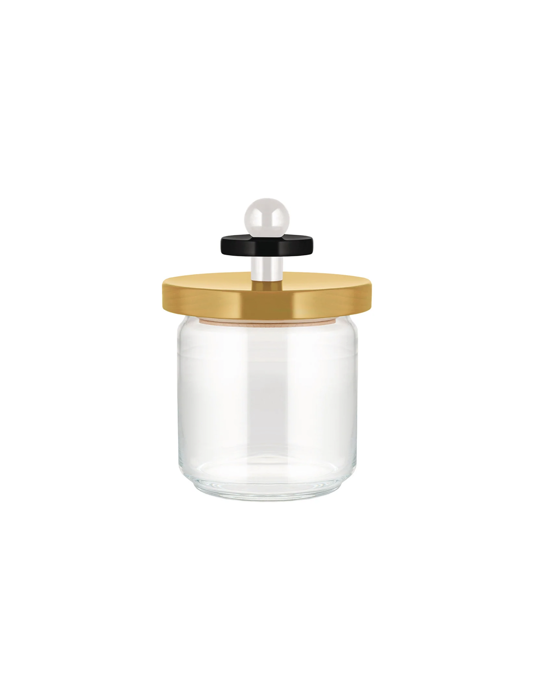 Ettore Sottsass reinterpreta un clásico de la cocina con su inconfundible lenguaje de volúmenes coloreados superpuestos. El bote ideal para conservar alimentos secos como arroz, pasta, galletas, o bien en polvo como azúcar, sal y café. El cuerpo de vidrio y el cierre hermético conservan el sabor y el aroma de los productos.