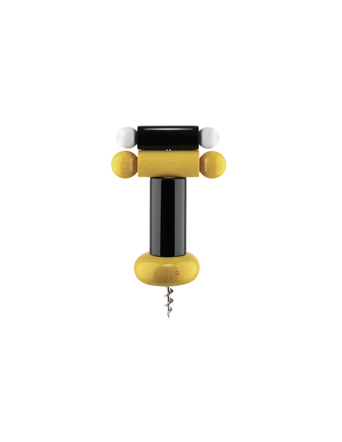 El sacacorchos según Ettore Sottsass: un utensilio funcional y al mismo tiempo emocionante. Fácil de utilizar: los volúmenes diseñados revelan una forma ergonómica, cómoda de agarrar. Fabricado en Italia, en el territorio donde se asienta Alessi, mediante un proceso de torneado semi-artesanal, con maderas de procedencia ecosostenible, y pintado con barnices a base de agua, totalmente libres de disolventes.