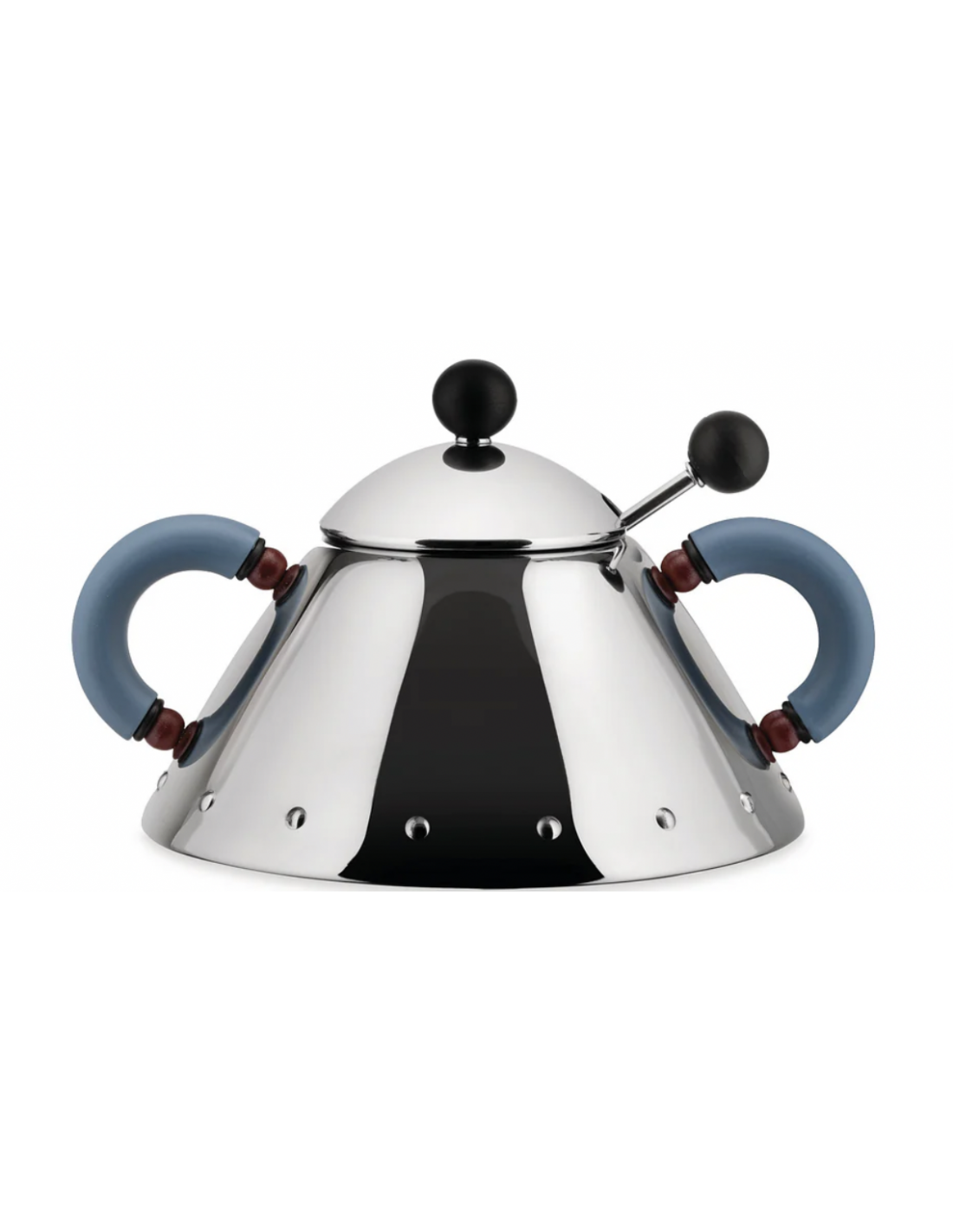 Este azucarero es uno de los primeros proyectos de la extensa y exitosa colección de artículos diseñados para Alessi por el diseñador y arquitecto estadounidense Michael Graves. El personalísimo código visual de Graves se evidencia aquí en una serie de influencias que abarcan desde el Art Déco y el Pop Art hasta el lenguaje de los dibujos animados. Gracias a este increíble enfoque de diseño, los artículos de esta colección se convirtieron en iconos internacionales del diseño de los años 80 y 90.