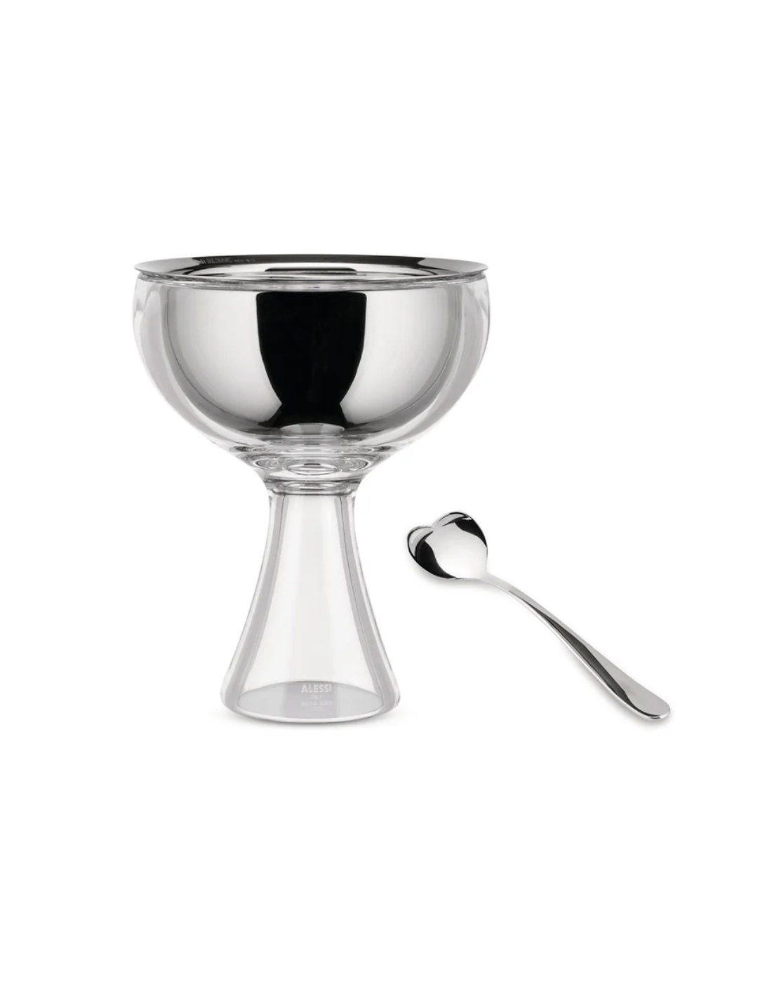 Big Love es un gran bol pensado tanto para solteros como para parejas: las dos mitades del corazón en forma de cuchara -un pequeño divertimento- permiten que cada uno pueda sorber su parte del helado sin tocar la del otro.