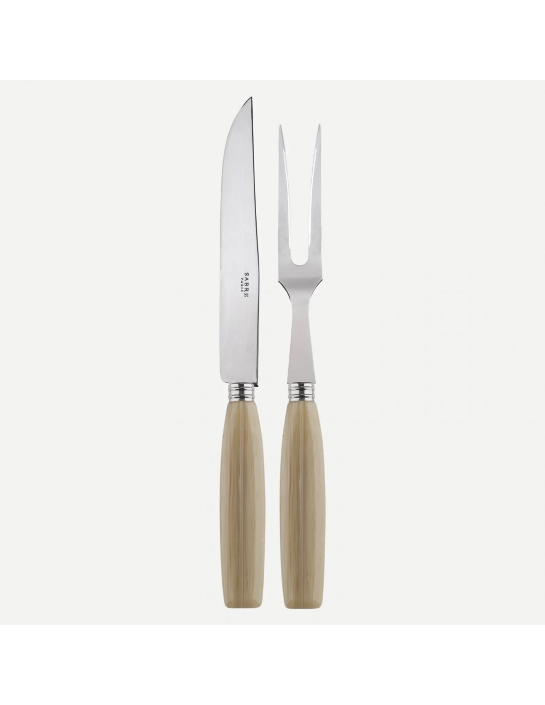 Compuesto por un cuchillo grande con hoja afilada y un tenedor grande, el juego de trinchar Sabre es muy eficaz para trinchar aves o cualquier otro corte de carne.