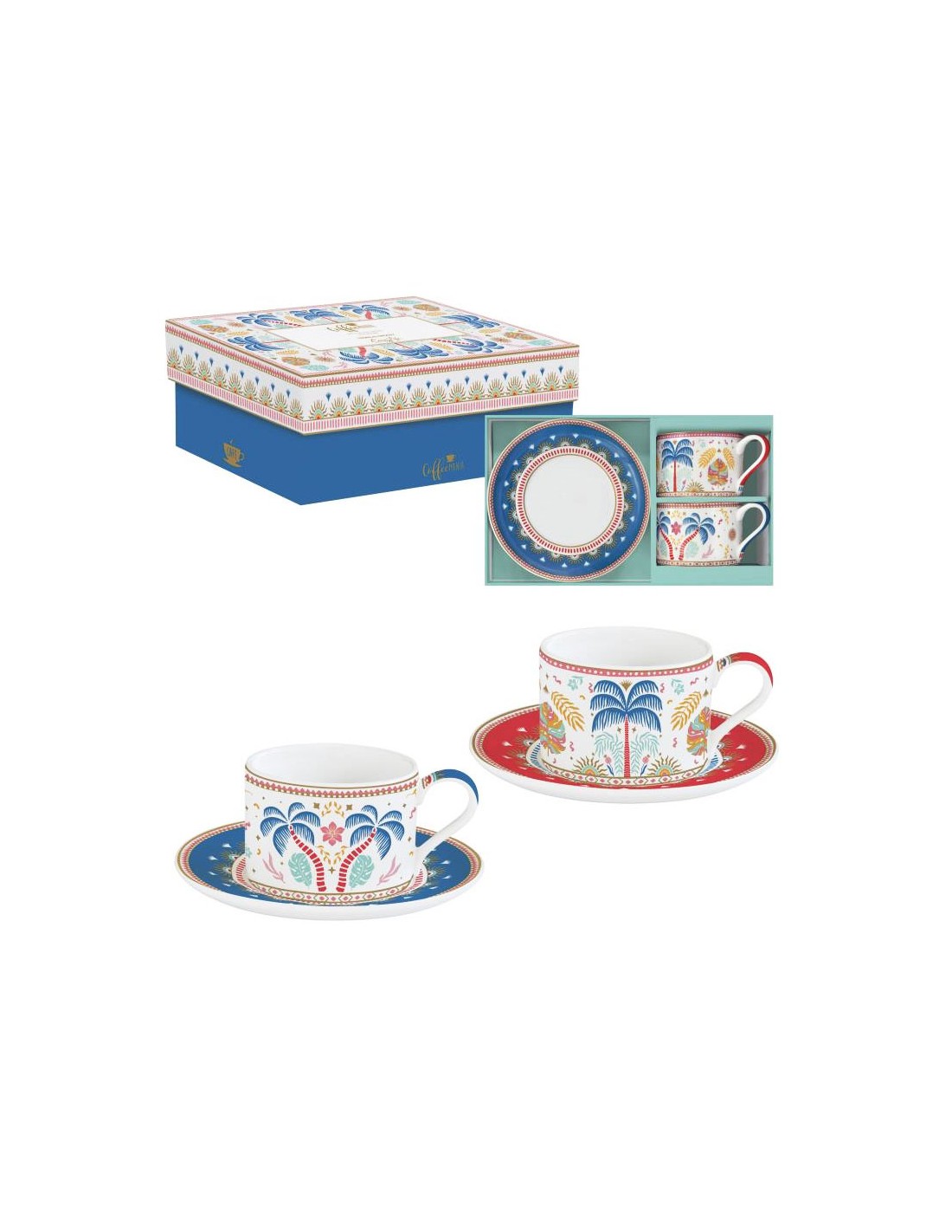 Incorpore el ritmo tropical y el colorido de la naturaleza a sus rituales diarios con las tazas Easy Life de la colección Tropical Groovy. Este vibrante set contiene dos tazas de porcelana con una capacidad de 240 ml, ideales para café, té, cacao o cualquier bebida favorita. Inspiradas en plantas exóticas, colores cálidos y la vibrante energía de los trópicos, las tazas de la colección Tropical Groovy aportan alegría, relajación y estilo a cada sorbo. Los ricos motivos de hojas, flores y sutiles tonos vintage crean una impresión visual única que deleita, ya sea que las disfrute solo, en pareja o con amigos.