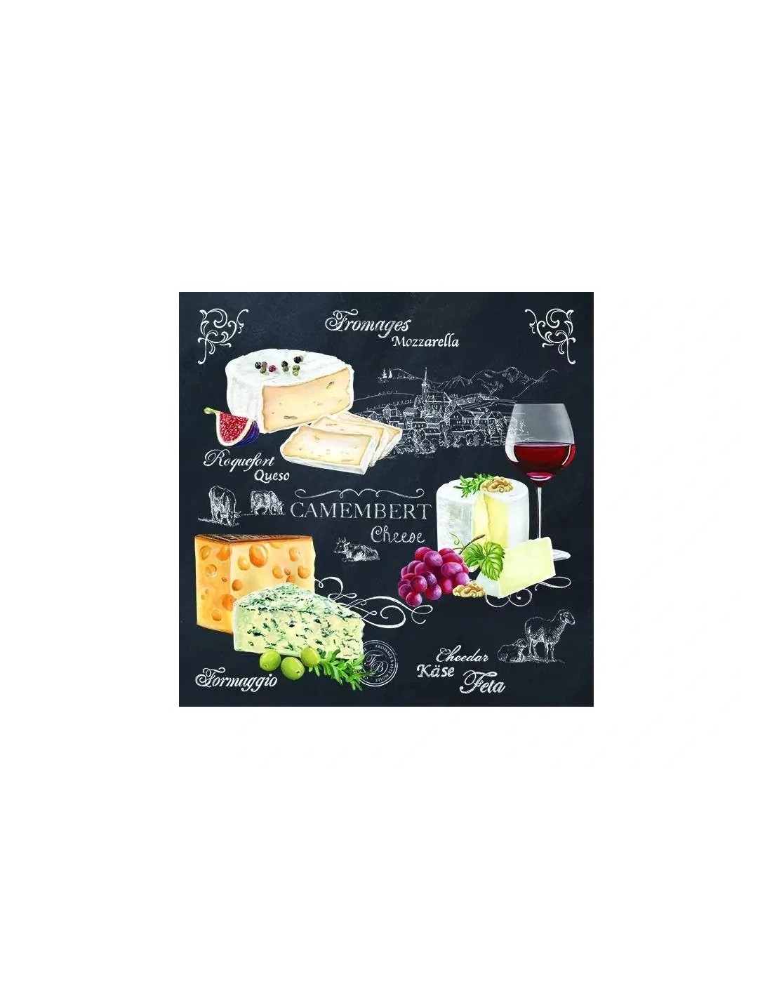 La servilleta de papel "El Mundo del Queso" con motivo de queso es de tres capas. El paquete contiene 20 servilletas. Mide 33×33 cm.