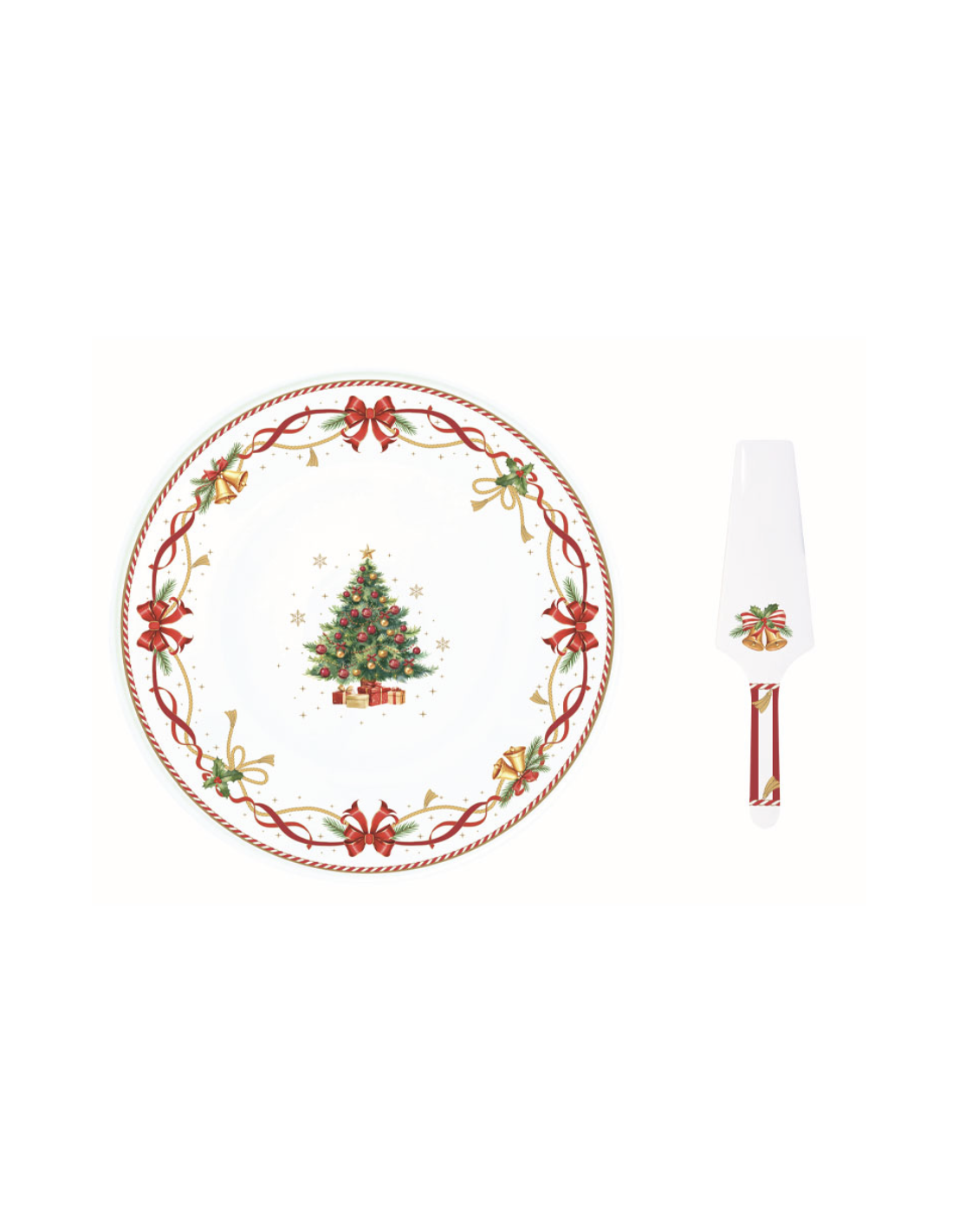 Elegante plato de porcelana para tartas de la colección Christmas Tale de Easy Life. Con su refinado diseño navideño y su práctico cucharón a juego, es el accesorio ideal para servir postres durante las fiestas. Incluye una caja de regalo a juego, lo que lo convierte en una idea de regalo perfecta.