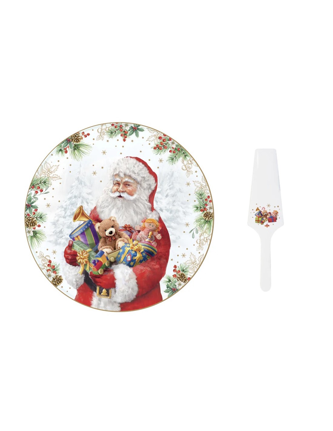 ¿Te gusta decorar la mesa navideña con productos únicos y especiales? Impresiona a tus invitados y alegra a tu familia con este plato para pastel de porcelana con pala "Easy Life Santa is Coming".