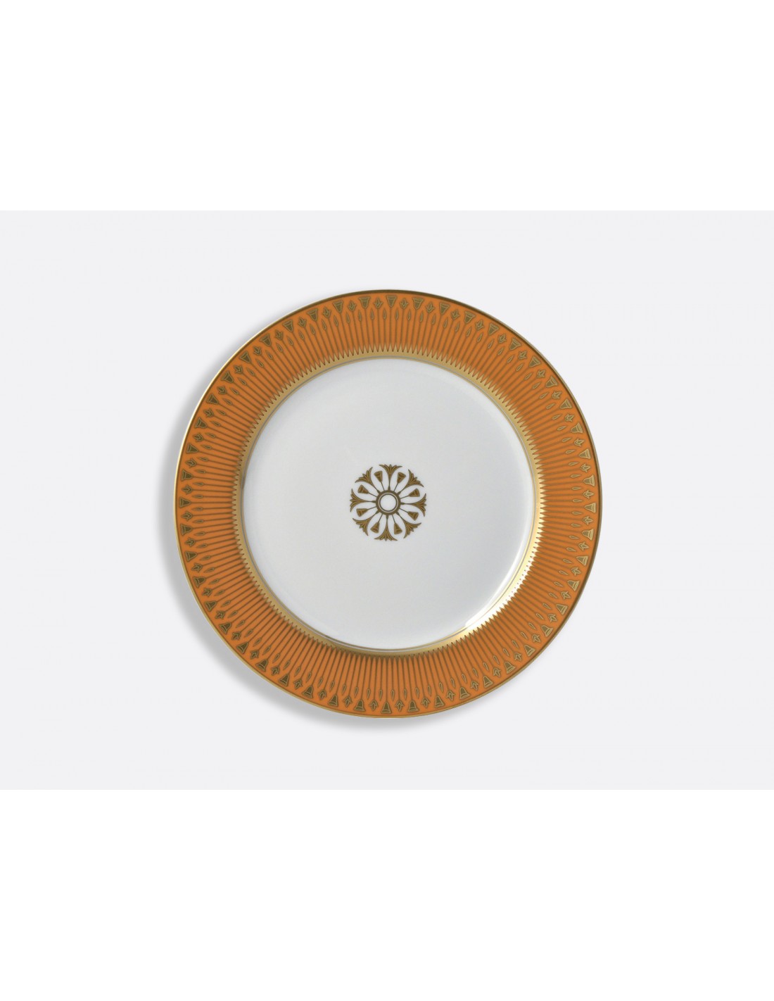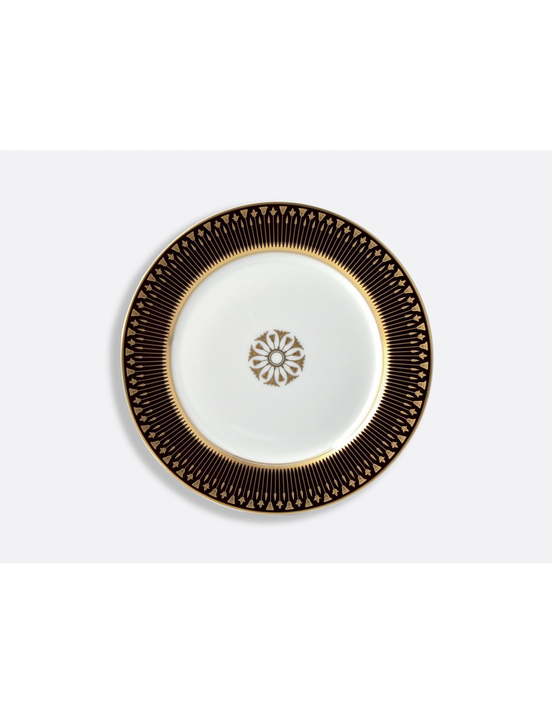 Esta colección retoma la grandeza de los estilos de porcelana francesa de principios del siglo XIX, sobre todo la influencia del célebre pintor de porcelana Pierre-Louis Dagoty, que combina la elegancia de las formas, los colores vibrantes y la suntuosidad del diseño y la aplicación del oro. El distintivo motivo de papiros en flor que irradia a lo largo del borde del plato rinde homenaje al apasionado interés por el diseño arquitectónico, el mobiliario y el arte de inspiración egipcia que se inició en el siglo XVIII y se intensificó tras las campañas napoleónicas del siglo XIX.