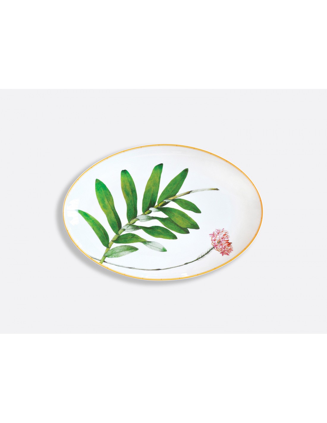 Se utilizaron ilustraciones del siglo XIX de un jardín de Mumbai que ya no existe para crear este patrón de flores y follaje. La original composición de las diferentes piezas de servicio y la diversidad de acuarelas permiten que esta colección coordine con la decoración moderna inspirada en los años 60' o la anglosajona, más natural y clásica.