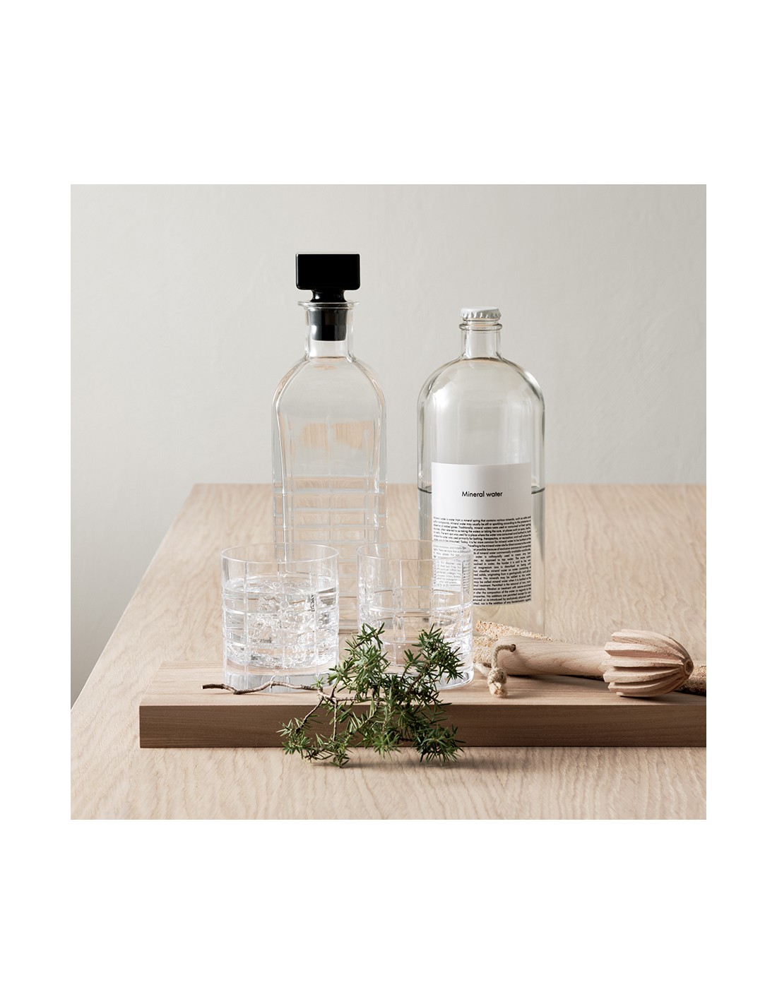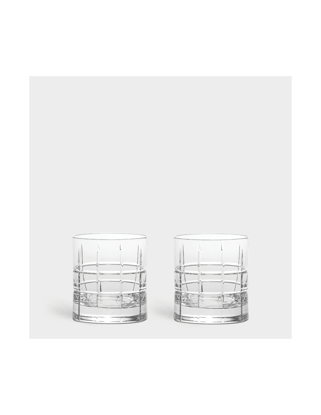 Street Double Old Fashioned de Orrefors, disponible en un juego de 2, tiene capacidad para 13 onzas y es ideal para servir licores o cócteles. El vaso tiene un diseño de cuadros de líneas rectas inspirado en las calles y avenidas entrecruzadas de Manhattan, Nueva York. Diseñado por Jan Johansson.