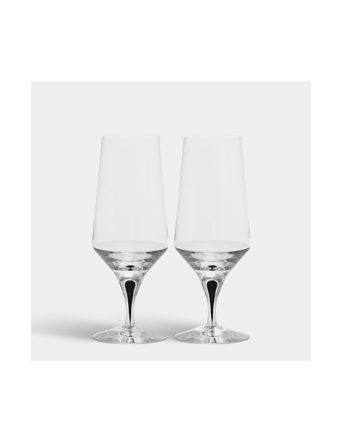 El Metropol Beer de Orrefors, disponible en un juego de 2, tiene una capacidad de 15,5 onzas y es excelente para todo tipo de cervezas, incluyendo lager, pilsner e IPA. El vaso de cerveza está soplado a boca en Suecia por expertos sopladores de vidrio y se inspira en el diseño clásico Intermezzo de Erika Lagerbielke, pero con una gota de negro sellada en el interior del tallo y un cuenco con una forma más angular y austera.