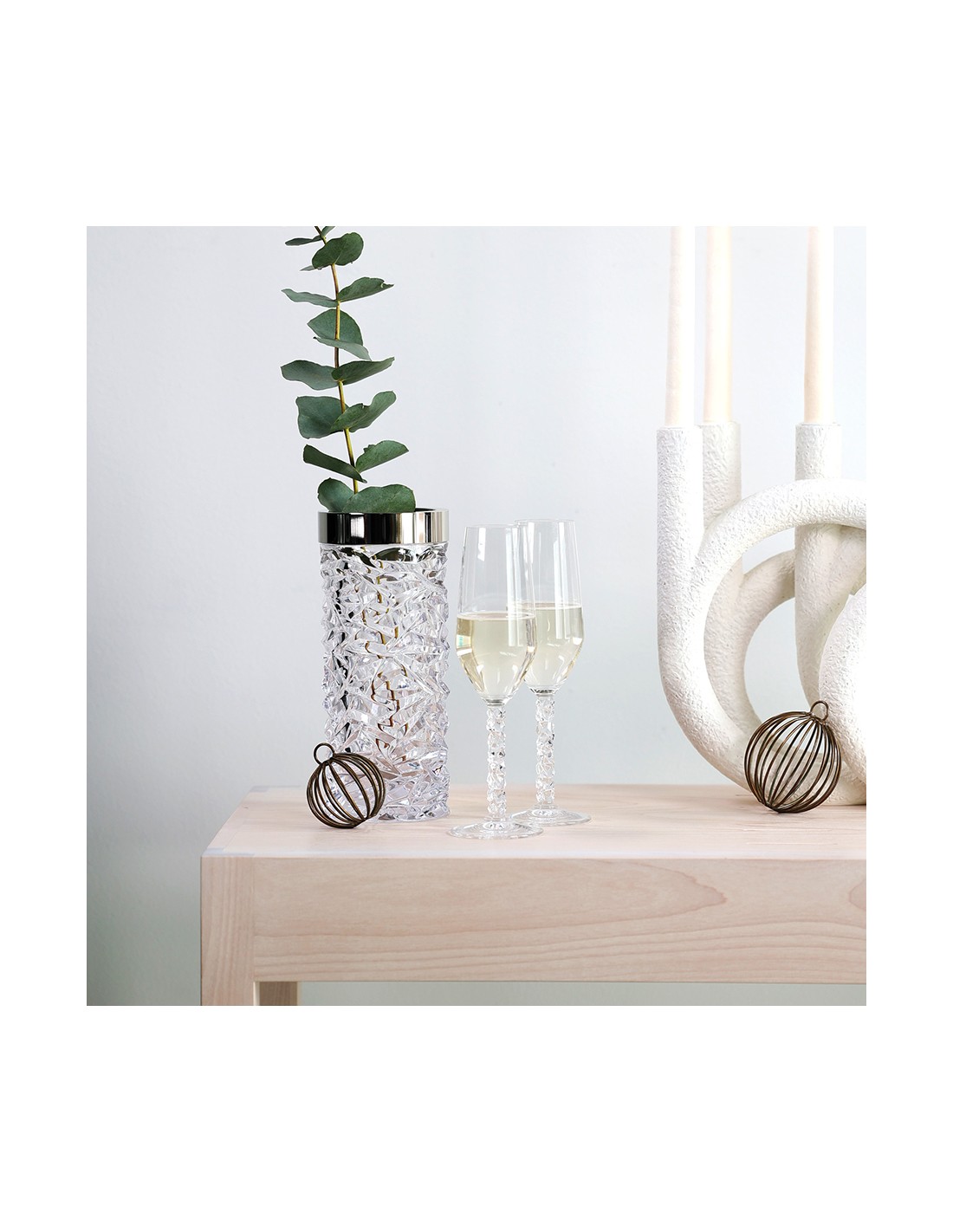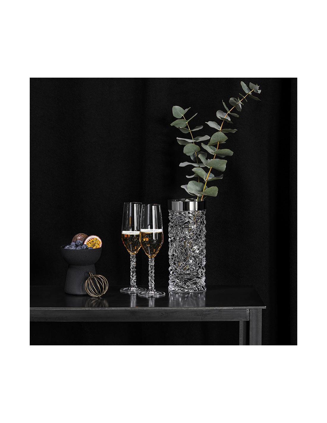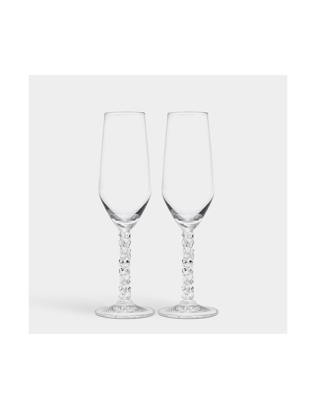 La colección Carat se basa en una interpretación contemporánea del cristal tallado tradicional por el que Orrefors es mundialmente conocido. Carat Champagne, disponible en un juego de 2, tiene un tallo cubierto con el motivo asimétrico característico de la colección, que produce hermosos reflejos de luz en el cristal. La copa de champán tiene capacidad para 8 onzas y su forma de flauta la hace ideal para bebidas espumosas, ya que el estrecho cuenco preserva las burbujas en la bebida. Diseñada por Lena Bergström.