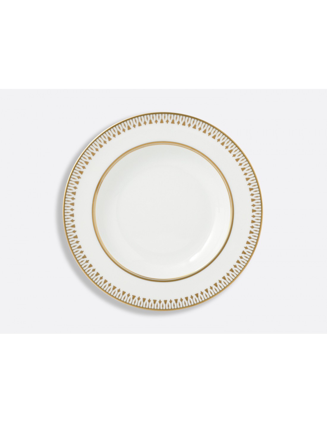 Esta colección retoma la grandeza de los estilos de porcelana francesa de principios del siglo XIX, sobre todo la influencia del célebre pintor de porcelana Pierre-Louis Dagoty, que combina la elegancia de las formas, los colores vibrantes y la suntuosidad del diseño y la aplicación del oro. El distintivo motivo de papiros en flor que irradia a lo largo del borde del plato rinde homenaje al apasionado interés por el diseño arquitectónico, el mobiliario y el arte de inspiración egipcia que se inició en el siglo XVIII y se intensificó tras las campañas napoleónicas del siglo XIX.